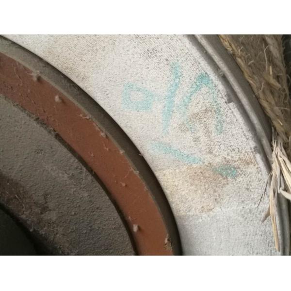 The granite crushing roller end face is marked with a rotation arrow and must not be inverted during installation.